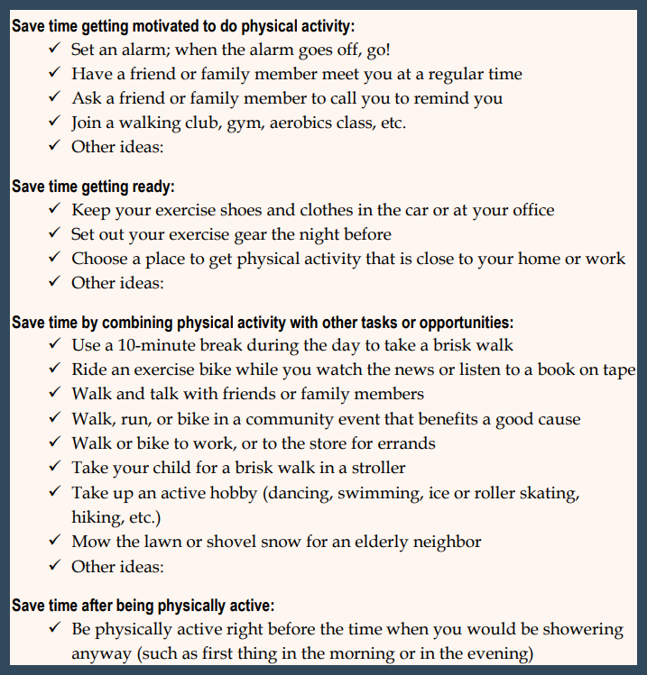 warm-ups, exercise activities, and cool downs.