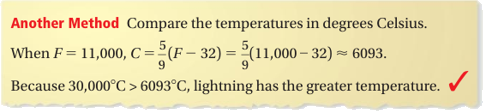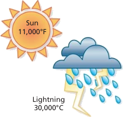 of lightning in degrees Celsius. You are asked which temperature is greater.