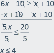 6x 10 ≤ x + 10
